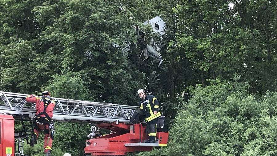 Небольшой самолет застрял в деревьях в Германии