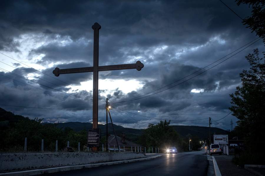 Этот крест стоит на дороге, ведущей из Косовска-Митровице к столице Сербии, Белграду