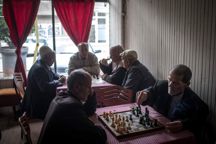 Старики, мирно играющие в шахматы в одном из кафе Митровице, в 1990-х наверняка принимали участие в войне. Многие сегодня предпочитают не вспоминать, кто на чьей стороне воевал