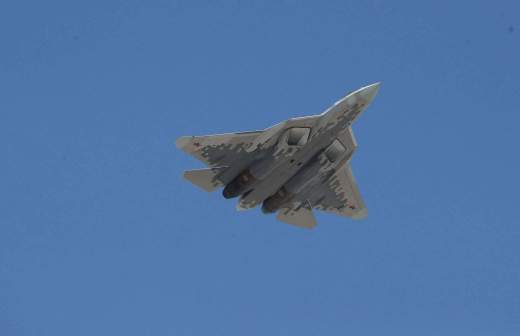 Су-57 — многофункциональный истребитель пятого поколения, может развивать скорость до 2,6 тыс. км/ч, обнаруживать летательные аппараты на расстоянии в несколько сотен километров и вести одновременно до 30 целей. Истребитель успешно прошел испытания в реальных боевых условиях в Сирии.