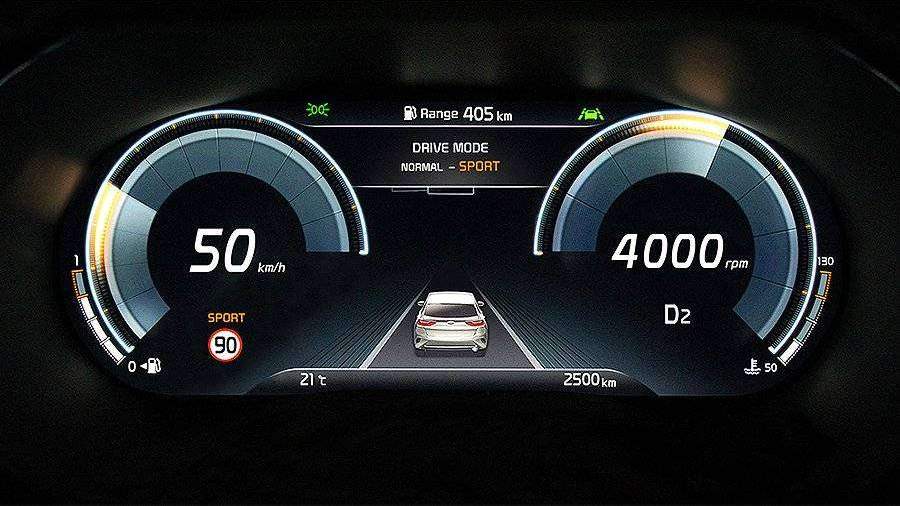 Отмечается, что цифровая приборная панель полностью заменит традиционные шкалы спидометра и тахометра, которые устанавливаются сейчас в легковых автомобилях Kia.