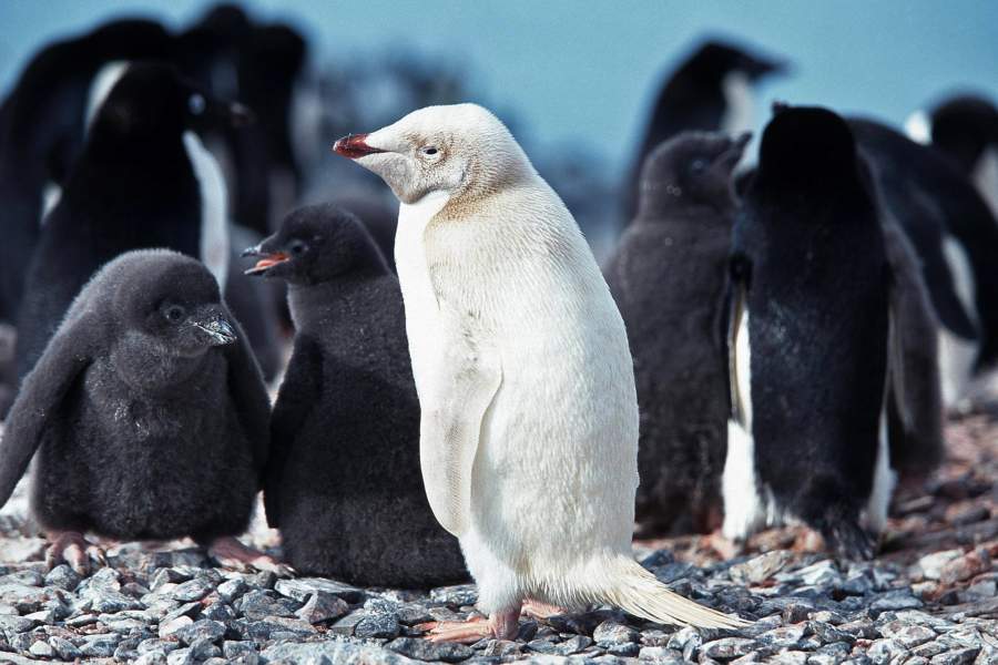 Пингвинов-альбиносов можно увидеть очень редко, обычно одна птица приходится на 146 тыс. обычных особей