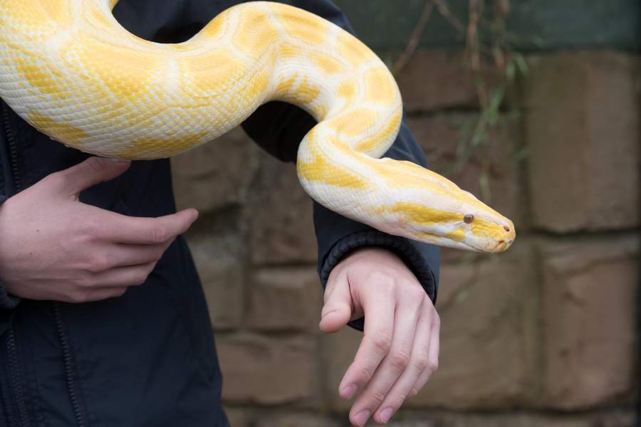 Это темный тигровый питон с альбинизмом. В дикой природе эти пресмыкающиеся очень уязвимы, но люди, которые держат змей дома, готовы заплатить за такую особь в несколько раз больше, чем за сородичей обычного окраса