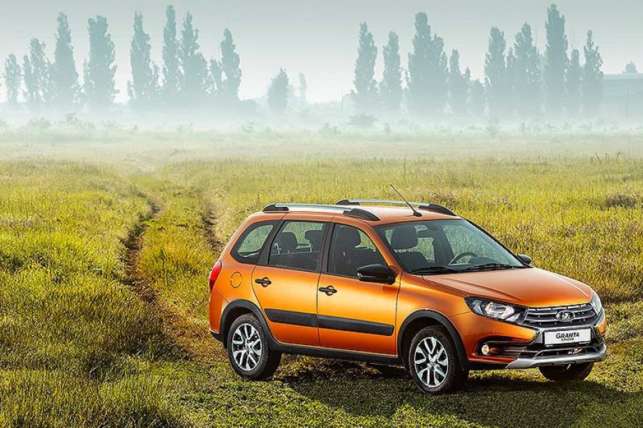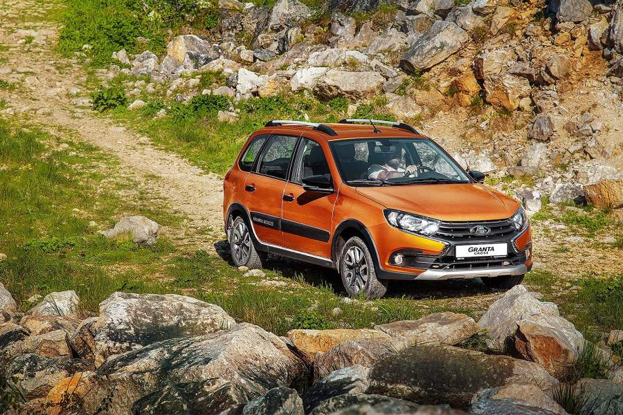 Granta Cross сделана по рецепту Vesta SW Cross: увеличенный клиренс, накладки из некрашеного и серебристого пластика, оригинальные легкосплавные колеса и рыжий «металлик»
