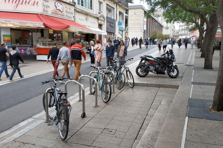 Вход в древнюю крипту Монпелье можно различить справа от велопарковки
