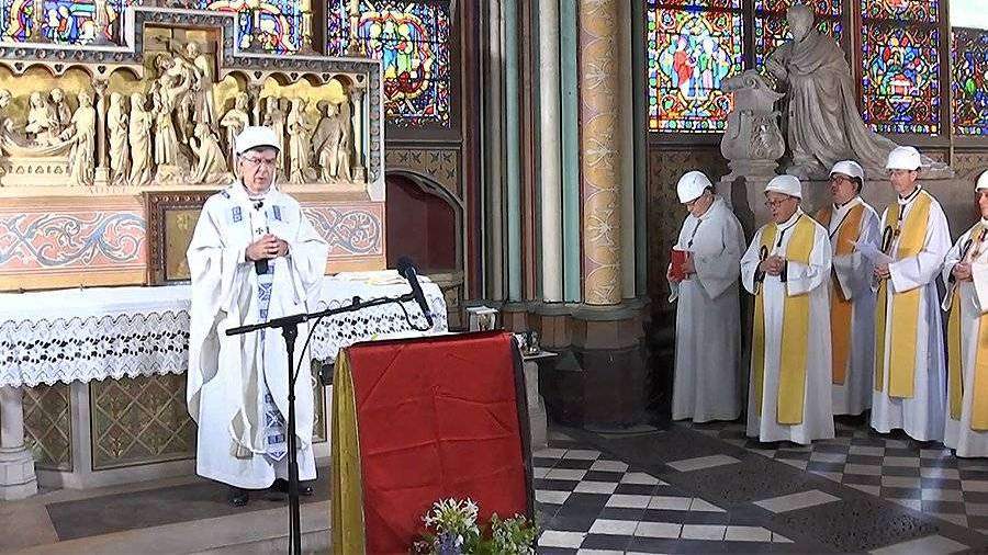 В соборе Парижской Богоматери началась первая месса после пожара, случившегося 15 апреля. Служба приурочена к празднованию освящения алтаря собора. Трансляцию мессы ведет католический телеканал KTO.