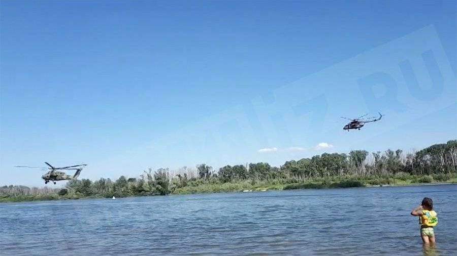 По словам очевидцев, сначала над рекой появился Ми-8, вскоре к нему присоединился «ночной охотник» Ми-28. Вертолеты пролетели буквально в паре метров над водой.