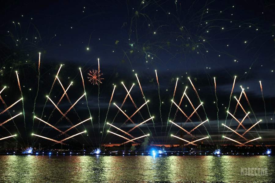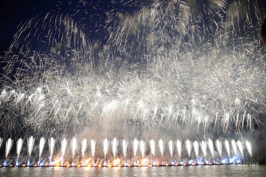 Сразу после концерта праздник переместился на территорию Дворцовой набережной и в акваторию Невы, где был дан рекордный по своей масштабности салют