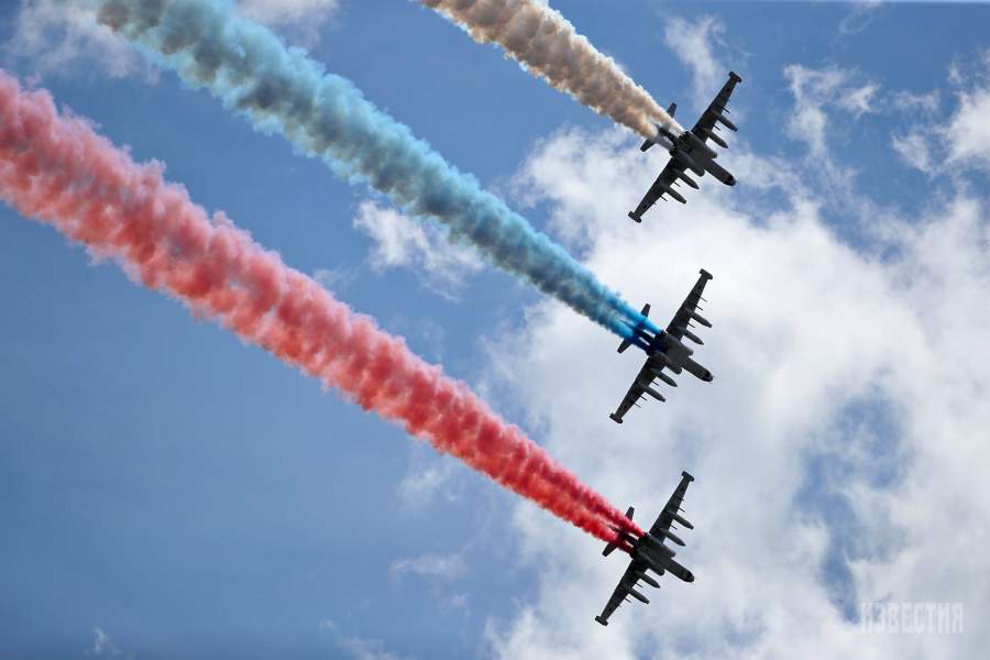 Штурмовики Су-25 раскрашивают небо в цвета российского флага