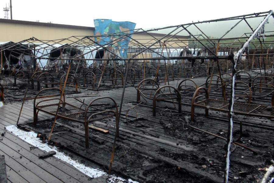 Последствия пожара в палаточном городке
