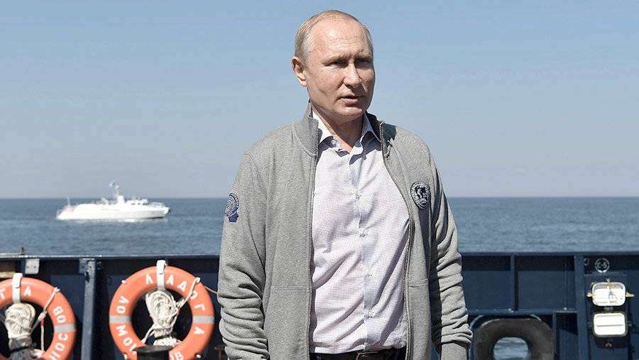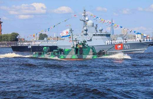 Путин обошел на катере линию боевых кораблей в Кронштадте