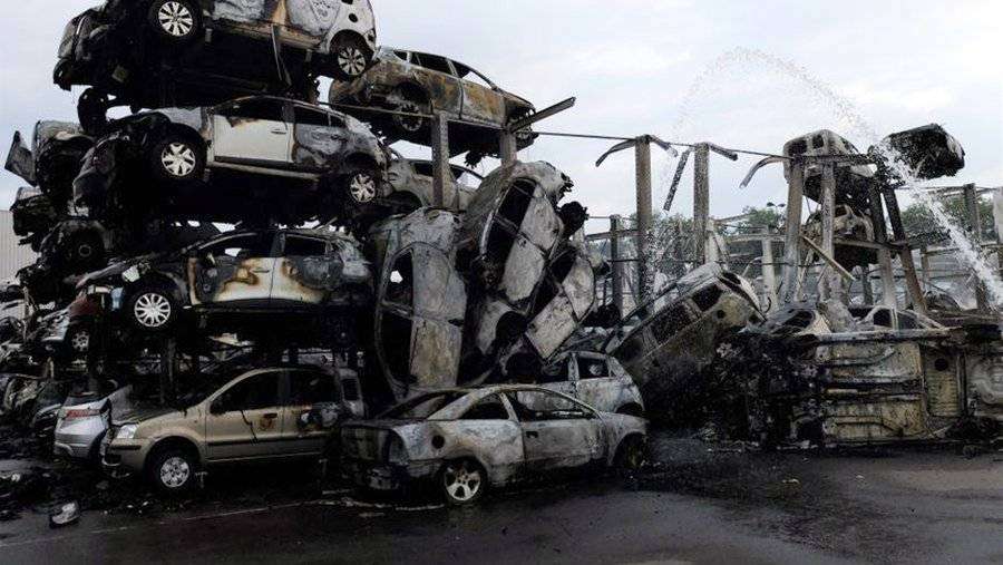 Около 500 машин сгорели на складе на востоке Франции