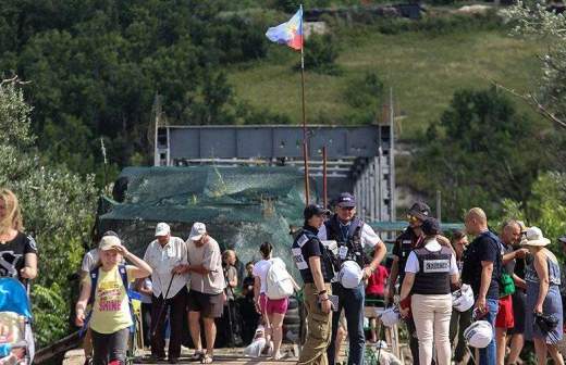 7 июля президент Украины Владимир Зеленский в сопровождении главы Европейского совета Дональда Туска посетил Луганскую, где находится единственный пункт пропуска между Украиной и самопровозглашенной Луганской народной республикой. Они осмотрели сломанную опору моста и пообщались с людьми, переходившими линию разграничения.