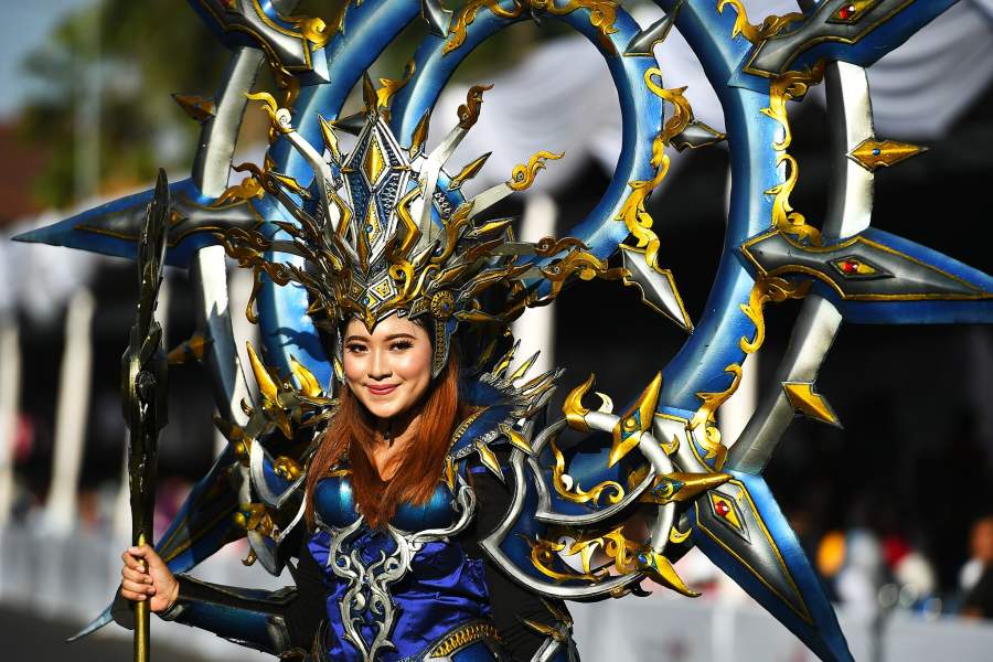 Одеяния участников представляли культуры ацтеков, даяков, каренов, монголов, минахасцев, полинезийцев, зулусов и викингов