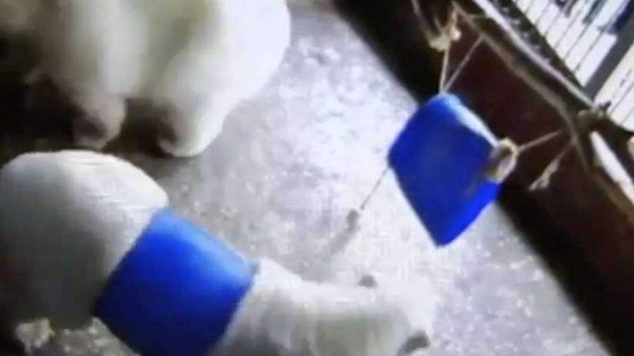 Сотрудники зоопарка в Перми спасли белого медведя, который играл с пластиковой бочкой и застрял. Видео спецоперации по вызволению хищника из плена во вторник, 6 августа, опубликовал телеканал РЕН ТВ.