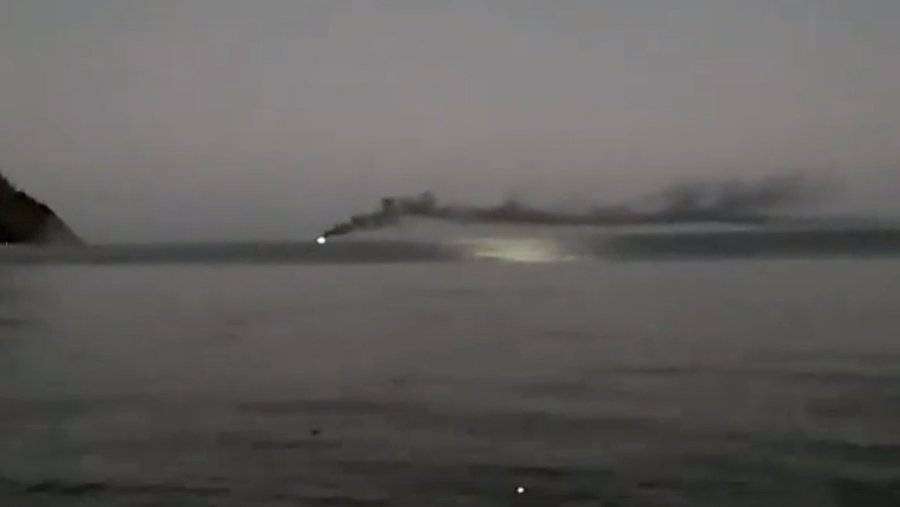 Горящее в Черном море рыболовецкое судно попало на видео