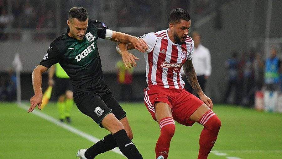 Греческий «Олимпиакос» разгромил «Краснодар» в первом матче раунда плей-офф квалификации Лиги чемпионов.