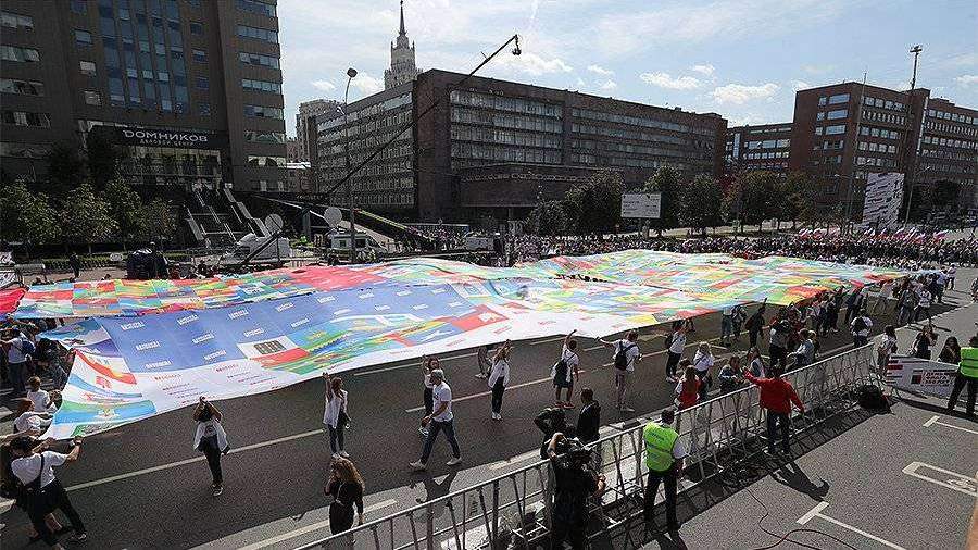 Развернутое в Москве полотно с флагами попало в Книгу рекордов России