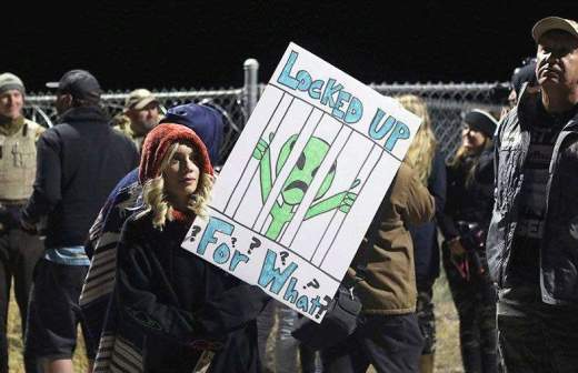 В день икс несколько сотен человек все-таки добрались до ворот секретной военной базы из городских легенд. Сто человек пришли ночью, еще триста — днем. Всего по пустынной дороге к «Зоне 51» проехали порядка 800 автомобилей, доложил шериф округа.