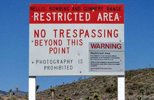 Подобраться к зоне проблематично. Минобороны США предусмотрительно изъяло десятки гектаров земли вокруг нее в середине прошлого века. Ехать по пустыне до нее порядка 3,5 часа.