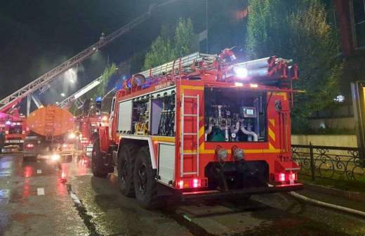 Отмечается, что тушение пожара осложнено отсутствием источников воды в районе. Воду везут из реки, расположенной в 3 км от цеха. Всего в тушении пожара задействовали 10 единиц пожарно-спасательной техники.