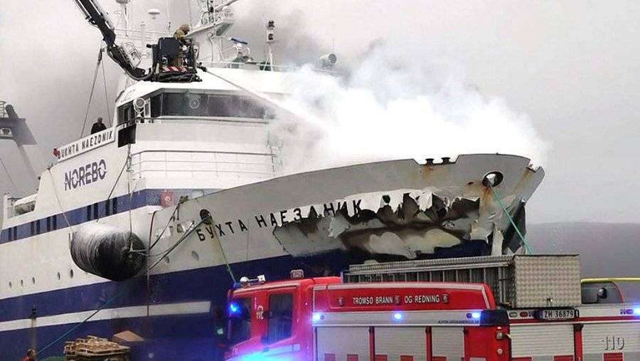 Моряков горящего в Норвегии российского траулера эвакуировали