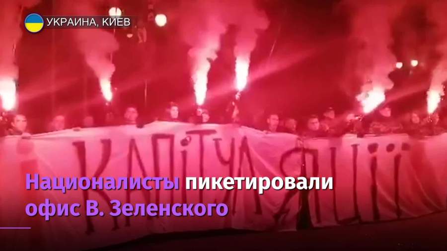 1 октября националисты вышли к зданию офиса президента Украины Владимира Зеленского из-за согласования «формулы Штайнмайера». Пришедшие были с флагами националистической партии «Национальный корпус» и большой вывеской с надписью «Нет капитуляции!».