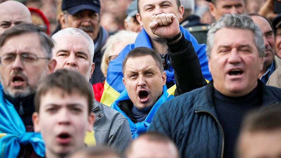 В Киеве на главной площади города — майдане Незалежности — собрались около 10 тыс. противников этой инициативы. Координатором акции выступило «Движение сопротивления капитуляции», в которое входят националисты и сторонники бывшего президента Украины Петра Порошенко.
