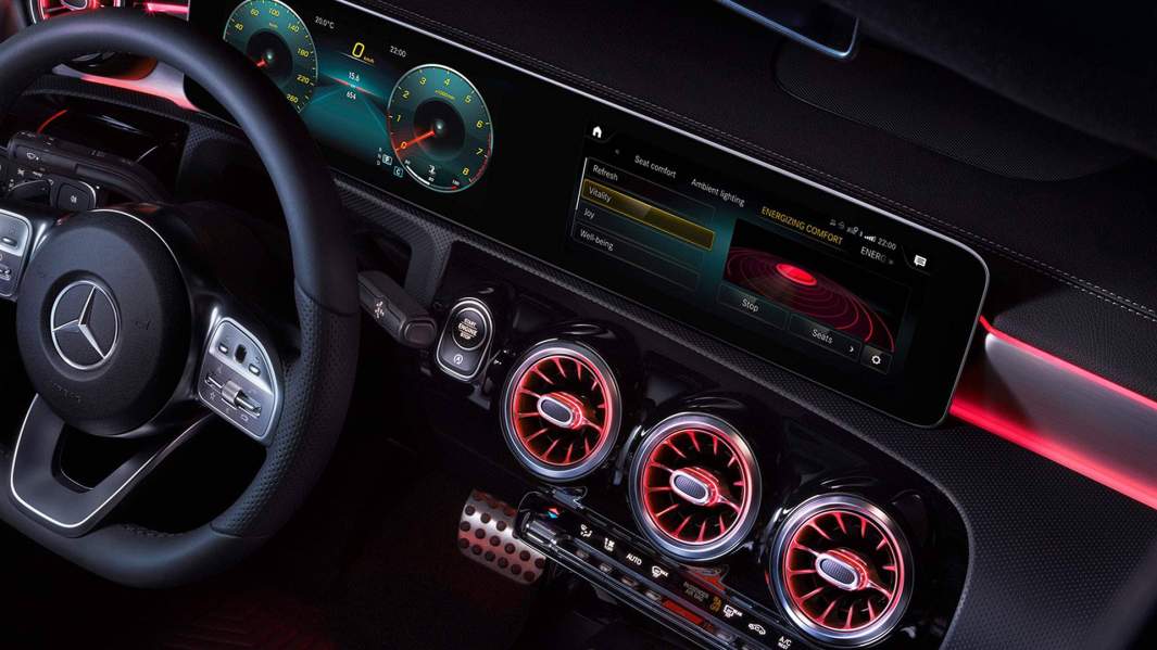 С обзором с водительского места не очень — что вы хотели от купеобразной приземистой машины. Передние стойки массивные, с большим наклоном. На светофоре приходится из-за них выглядывать. На заднем ряду CLA ты словно замурован в склепе. И всё это из-за огромных передних анатомических сидений — они напирают на пассажиров второго ряда.