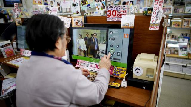Фумико отбирает фотографии для печати в фотолаборатории, расположенной рядом с ее домом в Кавасаки