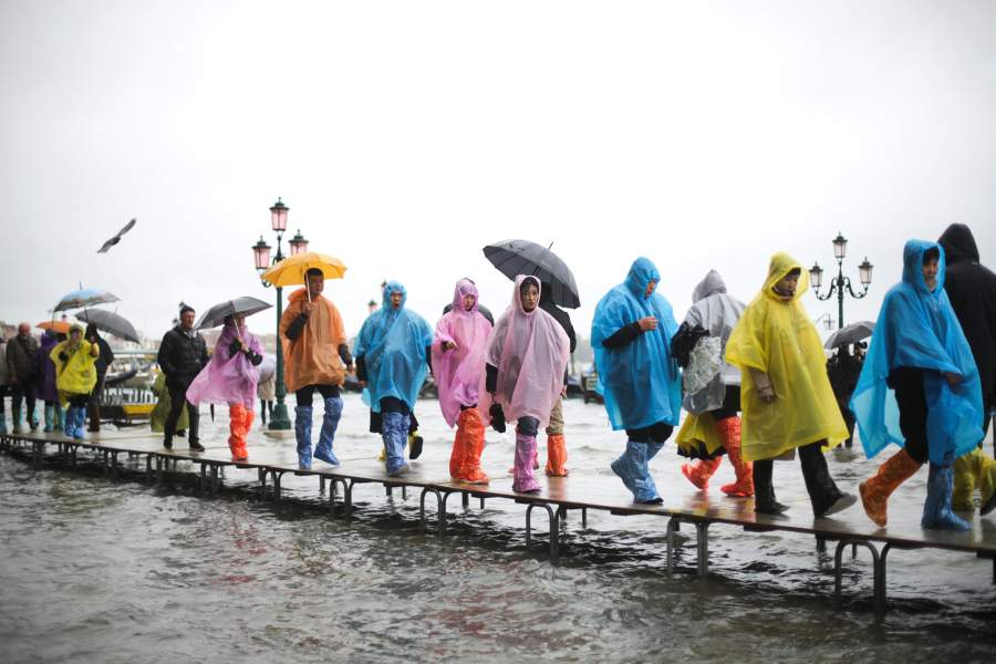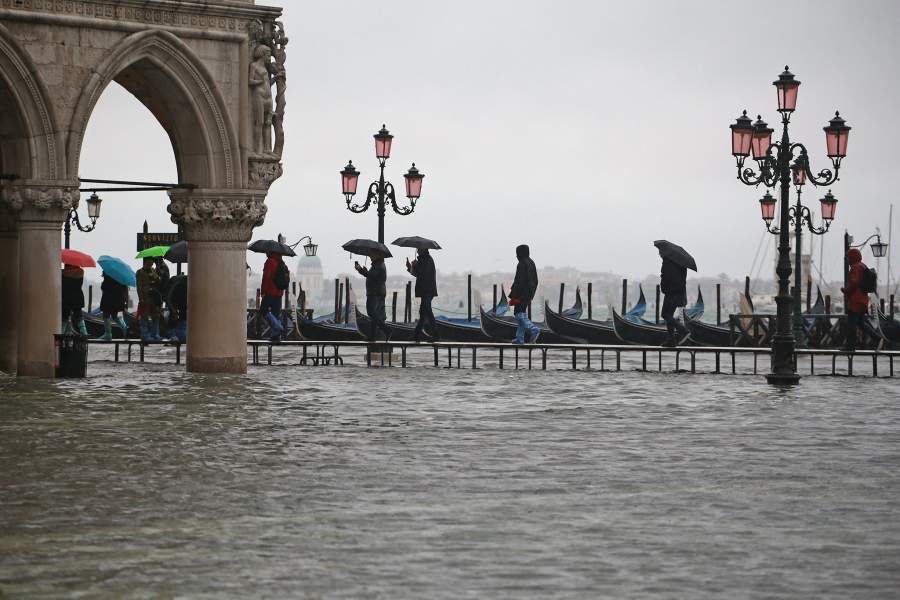 Туристы и жители города могут передвигаться по специальным мосткам, которые устанавливают в периоды «высокой воды»