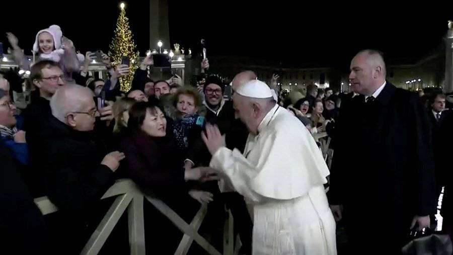 В интернете появилось видео с празднования Нового года в Ватикане, где папа римский Франциск ударил женщину по руке, передает телеканал EuroNews в среду, 1 января.