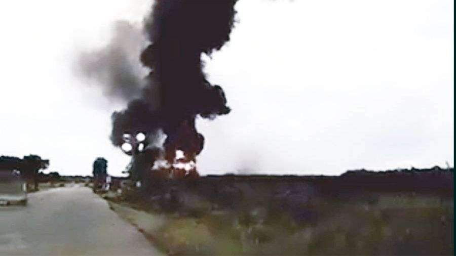 На кадрах видны последствия атаки на объект и клубы дыма, которые поднимаются над базой.