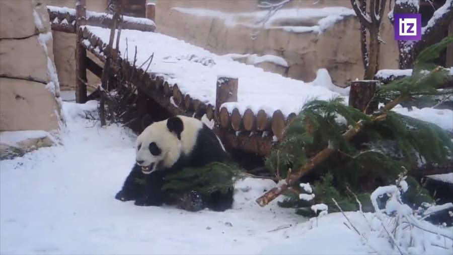 Видео с радующейся снегу пандой