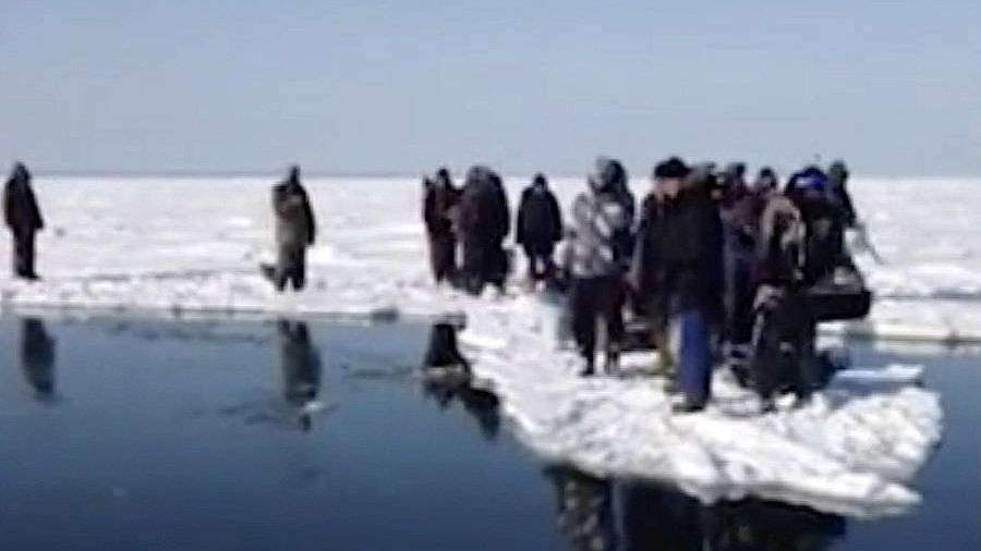 Появилось видео спасения рыбаков с оторвавшейся льдины на Сахалине