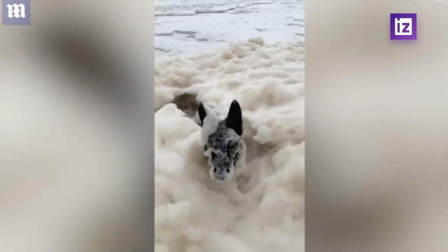 Видео с немецкой овчаркой, которая очень любит морскую пену