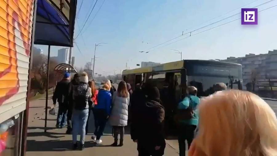 Люди не помещаются в автобус в Киеве