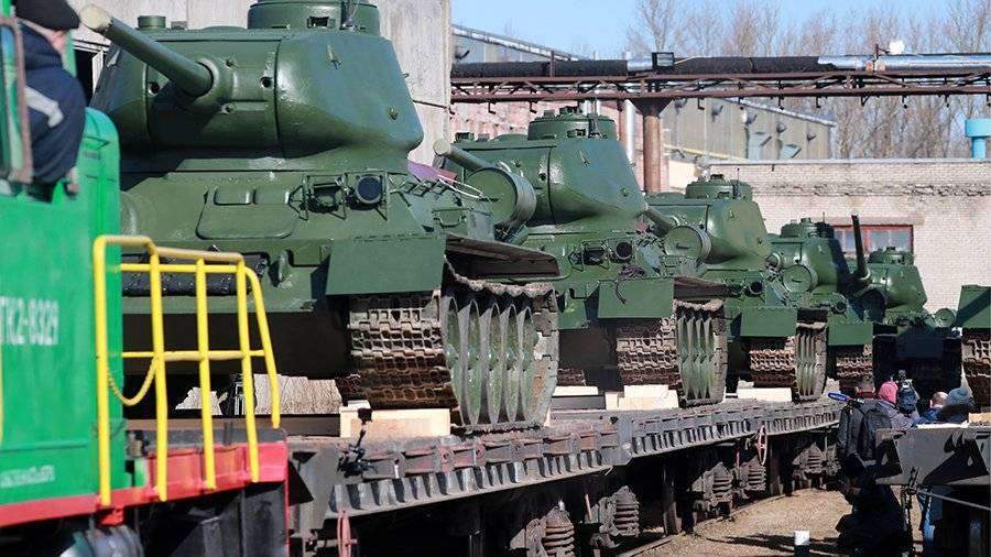 Танки Т-34 танковой армии Западного военного округа доставил в Алабино железнодорожный эшелон из Санкт-Петербурга. «В ближайшее время экипажи, которые составлены из военнослужащих 1-й танковой армии, приступят к тренировкам для участия в военном параде на Красной площади», — сообщает пресс-служба Западного военного округа.