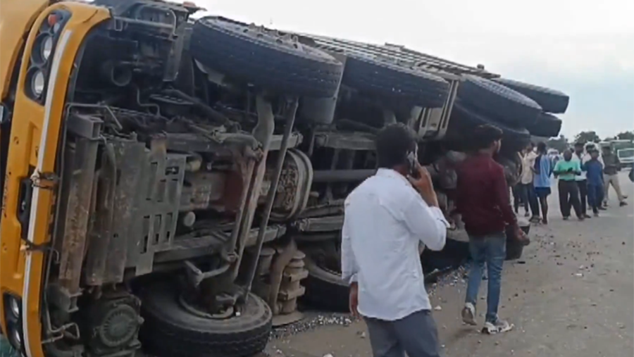 The accident occurred on the highway leading to the state capital, Hyderabad. A passenger bus with 70 people collided with a truck carrying gravel. The impact caused part of the cargo to collapse onto the bus, trapping the passengers inside.