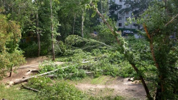 усилили ОМОНом, и к 12.30 пятницы, 26 августа, наиболее крупные деревья были спилены.