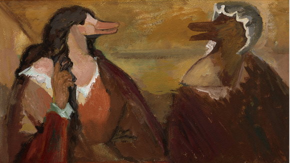 На выставках нередко можно встретить эскизы театральных костюмов и сценографии: жанр этот, некогда сугубо прикладной, воспринимается сегодня в качестве ретроспективного изыска. Но мало кто видел эскизы оформления для спектаклей в исполнении заключенных. Несколько таких экспонатов из фондов музея общества «Мемориал» представлены на выставке Михаила Рудакова, который одно время работал главным художником драматического театра в Котласе. А до того он успел повоевать, побывать в плену и отбыть срок в Воркутлаге. Обосновавшись в Москве после реабилитации, он стал плакатистом и книжным иллюстратором. В частности, своим заголовком экспозиция обязана его циклу рисунков к «Вечерам на хуторе близ Диканьки», отвергнутому издательством «Советская Россия». И все же главным своим призванием Михаил Рудаков считал живопись, образцы которой фигурируют на выставке в немалом количестве.