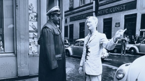 По меркам сегодняшнего дня венские акционисты не совершали ничего противоправного. Большинство акций было связано с собственным телом художника, ставшим его главным выразительным средством. Брус мог облиться белой краской, изобразить на костюме огромный шрам, якобы зашитый нитками, и отправиться так гулять по Вене (снимок 1965 года, запечатлевший эту акцию и арестовавшего Бруса полицейского, стал хрестоматийным). Или долго и не понарошку резал себя перед камерой бритвой, а затем истекал настоящей кровью. Акции так и назывались — «Раскрашивание головы», «Самораскрашивание», «Пытка».
