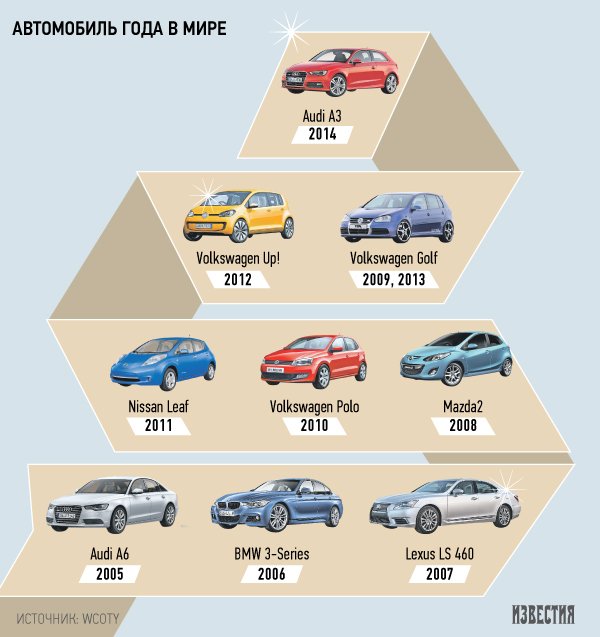 В этом году в финал обоих конкурсов не прошел ни один автомобиль под маркой Volkswagen. Но невелика потеря — «Автомобилем года» в мире признали Audi A3, который базируется на той же платформе — модульной MQB.