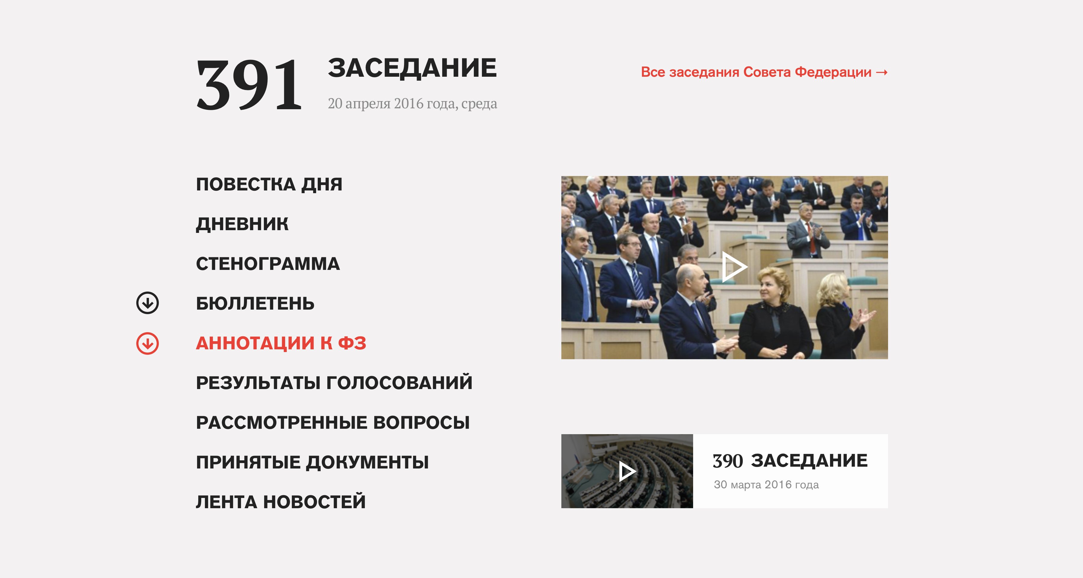 Так, например, при анализе посещаемости сайта выяснилось, что посетителей в первую очередь интересуют заседания Совета Федерации, то, какие принимаются законы, ход их обсуждения, результаты голосования. Поэтому на новом сайте раздел «Заседания» занял центральное место на главной странице.