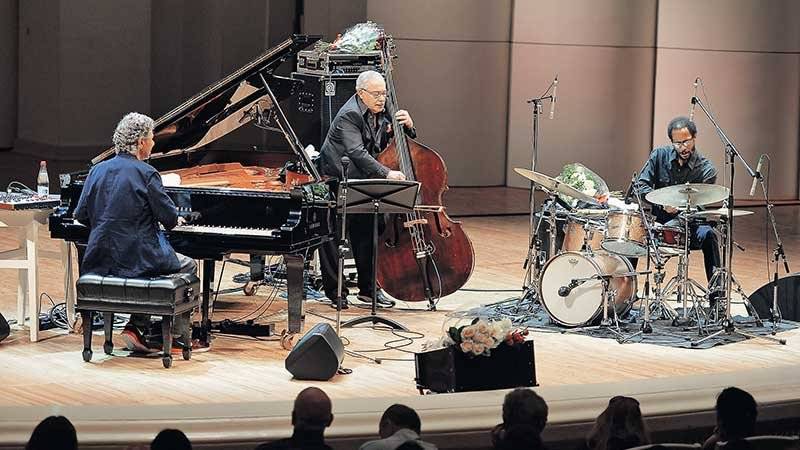 Впрочем, шоуменские приемы не мешали пианисту и его коллегам — Эдди Гомесу (контрабас) и Брайану Блэйду (ударные) — безупречно выполнить основную задачу: кавер-версии и оригинальные композиции они преподнесли с классической филигранностью и подлинно джазовой свободой.