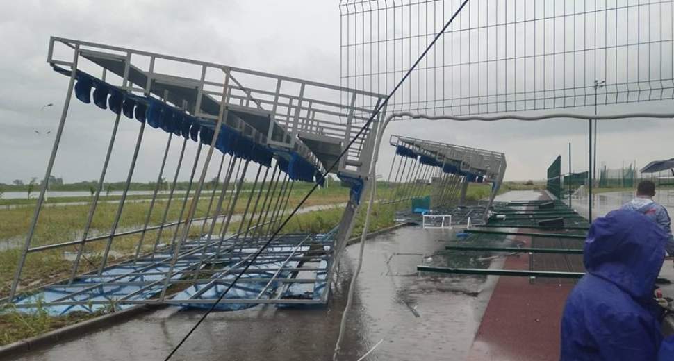 В Ростове-на-Дону на гребном канале 30 мая из-за сильно ветра и дождя обрушилась трибуна. В этот момент от непогоды под конструкцией пряталась группа детей, у которых там проходили соревнования.